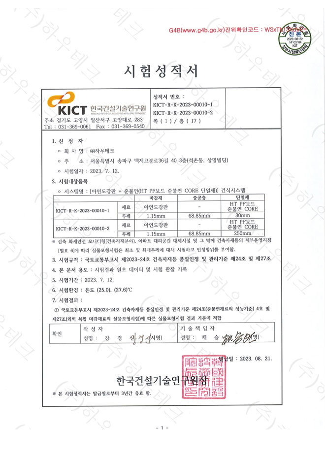 실물모형성적서-강판 > 인증현황